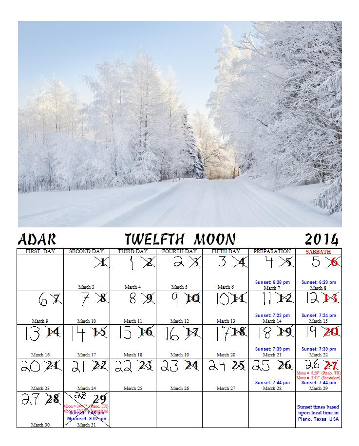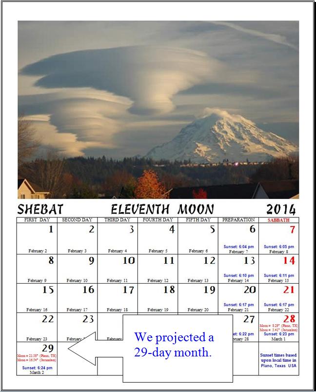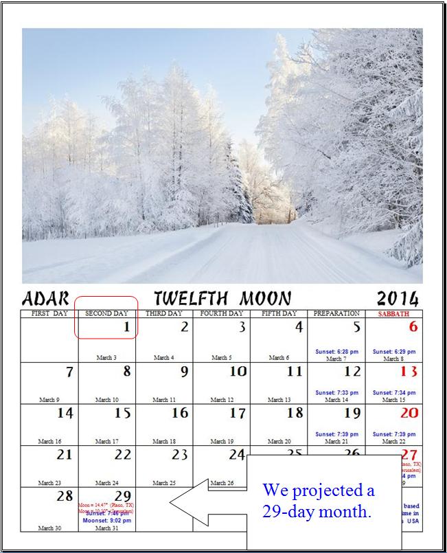 e are persuaded that the Scriptural month of Adar 2014 only consisted of