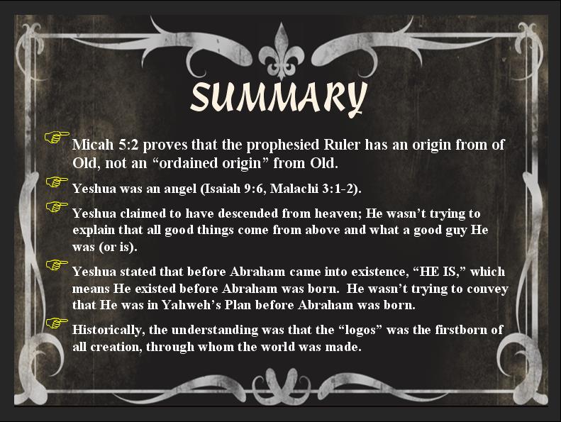 Yeshua an Elohim? At the 2:23:16 mark of the debate, Chuck states,