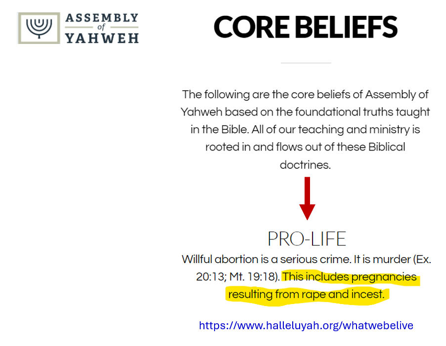 So if a woman is raped, becomes pregnant, and is granted an abortion, the above assembly presents such an act as a “serious crime.” I cannot support such a hard-line stance, and I am persuaded that neither does Yahweh’s Word. I fully address this concern in my PowerPoint presentation.