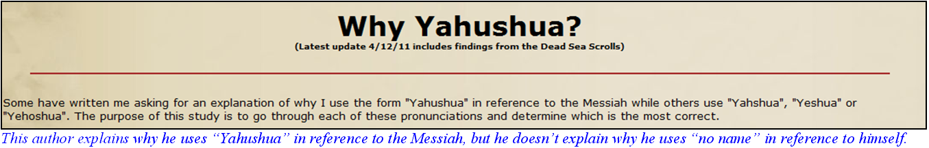 support of his belief that the only possible name for the Messiah is Yahushua.